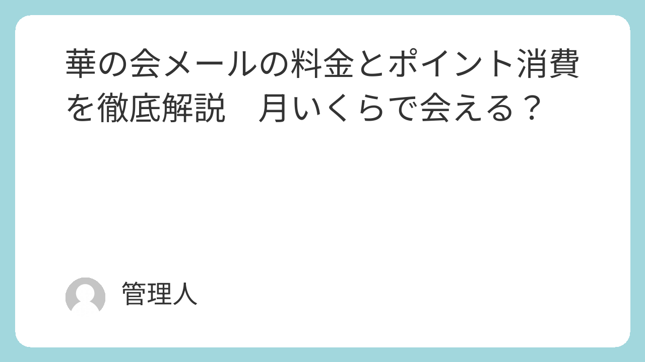 30歳以上限定のマッチングサイト「華の会メール」は、月額制ではなくポイント制を採用しています。本記事では1P=10円を前提に、消費ポイントの実数、購入時のボーナス、支払い方法、無料ポイント施策、そして「月いくらで会えるか」までを実測値ベースで解説します。